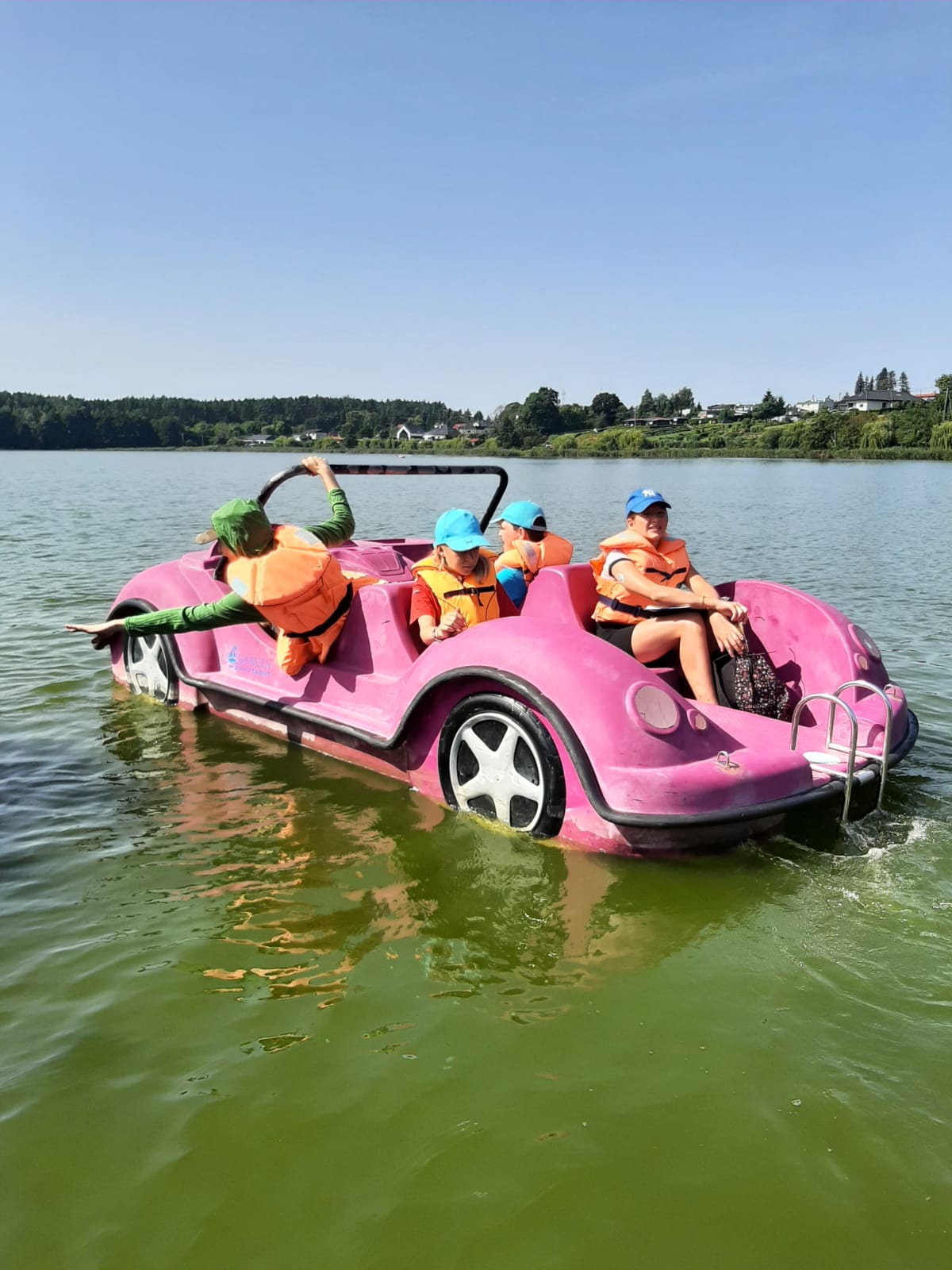 Wakacyjna przygoda, budowanie przyjaźni i pewności siebie z panią Sylwią i Panią Martą oraz panami od aikido i akrobatyki. Poznajemy różne techniki odkrywania siebie, swoich możliwości- ciała, umysłu i kreatywności. Kurs podstaw gry na ukulele, malarstwo akwarelowe, nauka hiszpańskiego i do spróbowania: techniki aikido i samoobrony oraz gimnastyka artystyczna. Kajaki, rowerki wodne, zabawy sportowe i kreatywne.